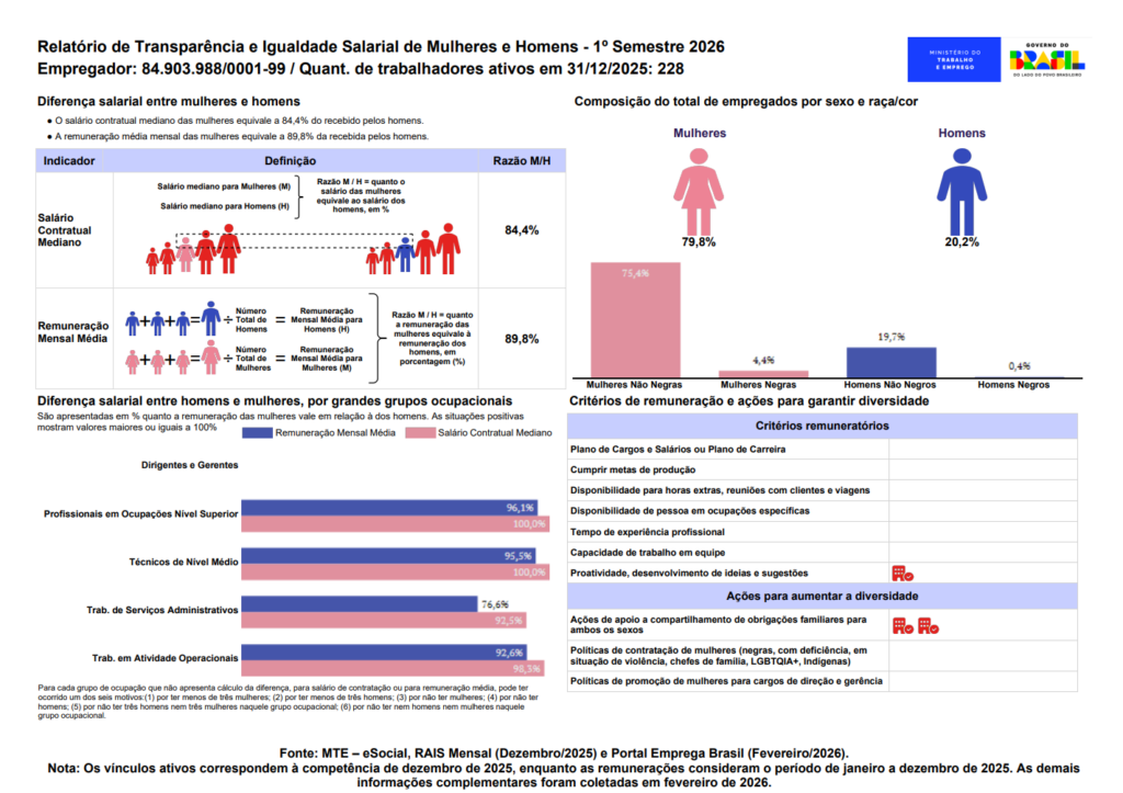 Relatório de Transparência e Igualdade Salarial de Mulheres e Homens – 1º Semestre 2026